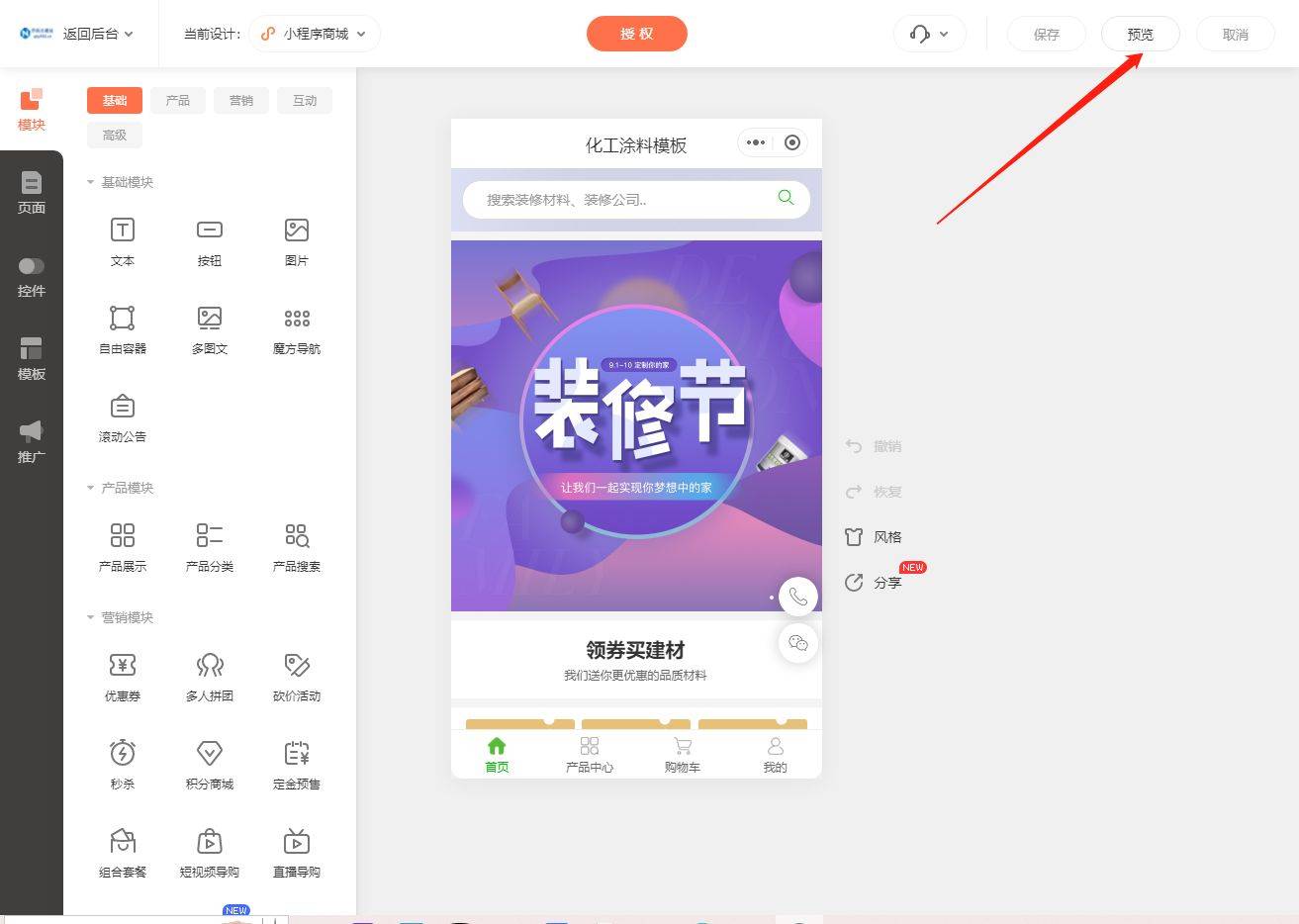 完成小法式商城模板的编纂点窜后,图片、功能模块、页面、控件、各类推广体例等都能够进行编纂点窜,查看更多起首,能够按照本人的需求进行添加和调整。